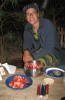 Wieder auf dem Velo rauschen wir die mörderische Betonrampe über die Falaise runter in die Ebene, wo uns wieder bewusst wird, dass wir uns eigentlich in der Sahelzone befinden: Dornsträucher, Sanddünen, magere Felder – die letzten Wochen hat uns der Niger glauben lassen, durch eine viel feuchtere Klimazone zu fahren. Am gleichen Tag erreichen wir totmüde Koro, die letze Ortschaft vor der burkinesischen Grenze. Wir übernachten im Campement und lernen zwei Rheintaler kennen, die mit einem umgebauten MAN-Kipper für zweieinhalb Monate in Afrika unterwegs sind. Während dem Plaudern kommt das Gespräch – wie könnte es bei uns auch anders sein – auf das Essen. Iris, die seit Tagen von Schoggi träumt, fragt ohne Hoffnung nach Schokolade. Klar! ist die Antwort, und schon kommt ein gekühltes Branchli daher. Noch selten haben wir ein Brügeli so genossen! Als Röbi und Elisabeth erwähnen, sie hätten noch Käse, Rivella und sonst allerlei aus der Schweiz dabei, werden unsere Gesichter immer länger. Sie laden uns kurzerhand zum Znacht ein: Steak mit Schweizer Kartoffeln, zum Dessert Stalden-Crème und Willisauer Ringli, mit auf den Weg erhalten wir noch zwei tolle Stücke Appenzeller Käse und Knorr Suppe. Sie hätten eben ein bisschen zuviel eingekauft... Noch im Bett mit vollem Bauch können wir unser Glück kaum glauben.